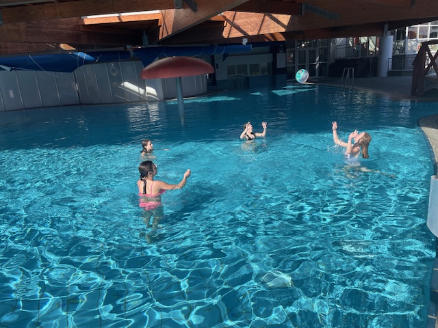 Po kosilu (ribji file in solata) smo igrale odbojko na vodi. Na bazenih smo se kopale in igrale do sedme ure popoldne, nato pa se odšle uredit. Ko sem prišla domov, sem bila zelo utrujena, zaradi vseh lepih vtisov pa vseeno nisem hitro zaspala.